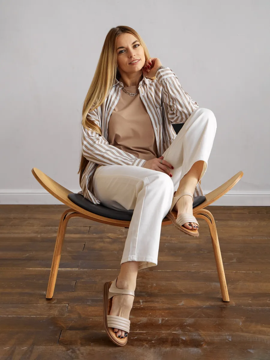 Лето — время, когда хочется наслаждаться лёгкостью и свободой в каждом движении. Женская обувь должна быть не только красивой, но и удобной, ведь комфорт играет ключевую роль в повседневной жизни. Летние босоножки из натуральной кожи на танкетке — это идеальный выбор для женщин и девушек, которые ценят стиль, качество и модные тенденции 2025 года. Эти кожаные босоножки созданы для тех, кто стремится к гармонии между изысканностью и удобством. Лаконичный дизайн с открытой пяткой и носком придаёт модели лёгкость и обеспечивает вентиляцию в жаркие дни. Регулируемый ремешок на застёжке делает посадку обуви максимально удобной, не создавая давления и натираний. Этот элемент не только добавляет элегантности модели, но и позволяет регулировать степень фиксации для идеального прилегания к ноге. Благодаря танкетке и амортизирующей подошве босоножки обеспечивают естественное движение стопы, делая походку лёгкой и уверенной. Мягкая стелька создаёт дополнительный комфорт, поддерживая свод стопы и предотвращая усталость. Такая обувь станет незаменимой в гардеробе, добавляя нотку свежести и элегантности любому образу. Эта модель сочетает в себе классическую изысканность и современные модные тенденции, что делает её подходящей как для повседневных прогулок, так и для особых случаев. Нарядные босоножки станут отличным выбором для работы в офисе, встреч с друзьями, романтического ужина или летнего путешествия. Добавьте в свой гардероб женские летние босоножки из натуральной кожи и наслаждайтесь лёгкостью, стилем и удобством! Независимо от того, куда вы направляетесь – на прогулку, деловую встречу или вечеринку – эта обувь станет вашим стильным и комфортным спутником.