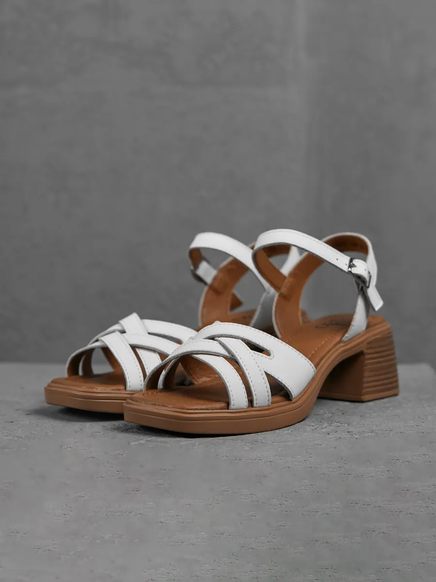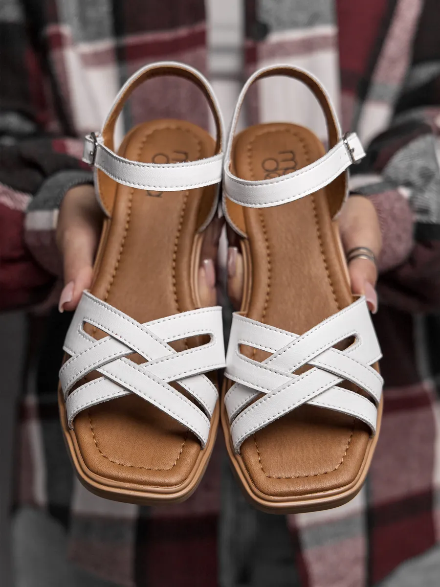 Модель выполнена в трендовом белом цвете, который гармонирует с любой палитрой гардероба — от ярких летних оттенков до спокойных нюдовых или бежевых тонов. Это делает их универсальными как для повседневной носки, так и для особых случаев. Особенно выразительно смотрится плетёный кожаный верх, добавляющий изделию стильный акцент.