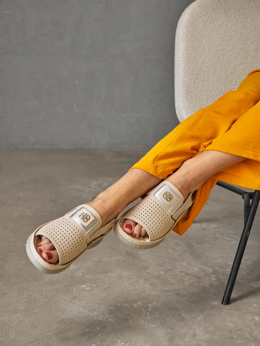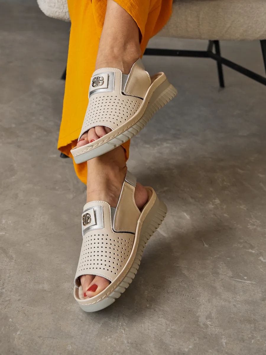Эта модель из натуральной кожи создана для тех, кто стремится к гармонии между стилем и практичностью. Белый цвет делает босоножки универсальными, позволяя им легко сочетаться с платьями, юбками, сарафанами и лёгкими брюками, добавляя образу нотку свежести и элегантности. Лаконичный дизайн с открытым носком и пяткой обеспечивает естественную вентиляцию, предотвращая перегрев ног даже в самые жаркие дни.