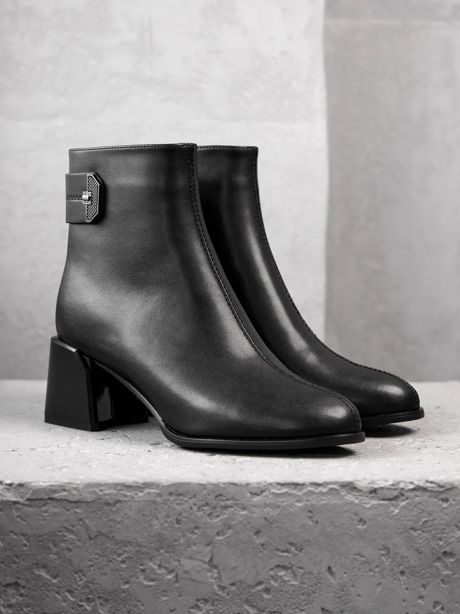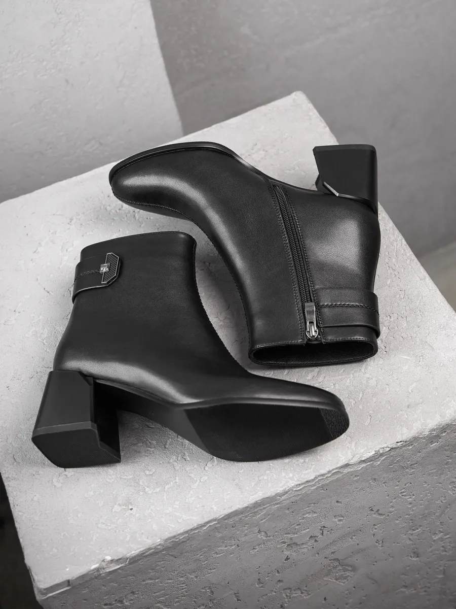Кожаная поверхность устойчива к износу и не требует сложного ухода, а молния на внутренней стороне делает обувь удобной для узкой и широкой стопы, облегчая процесс надевания. Эти полусапожки отлично сочетаются с платьями, юбками, джинсами и деловыми костюмами, добавляя в образ шарм и элегантность.