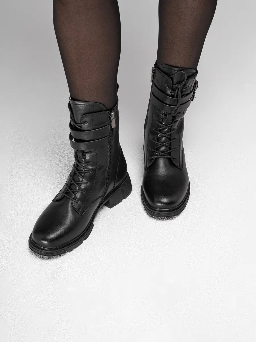 Высокие ботинки с молнией и шнурками для регулировки подъема по ноге создают стильный образ. Классическая модель черного цвета подойдет к любому повседневному, кэжуал, молодежному или праздничному наряду. Подойдут как для подростков, так и для девушек и женщин любого возраста.
