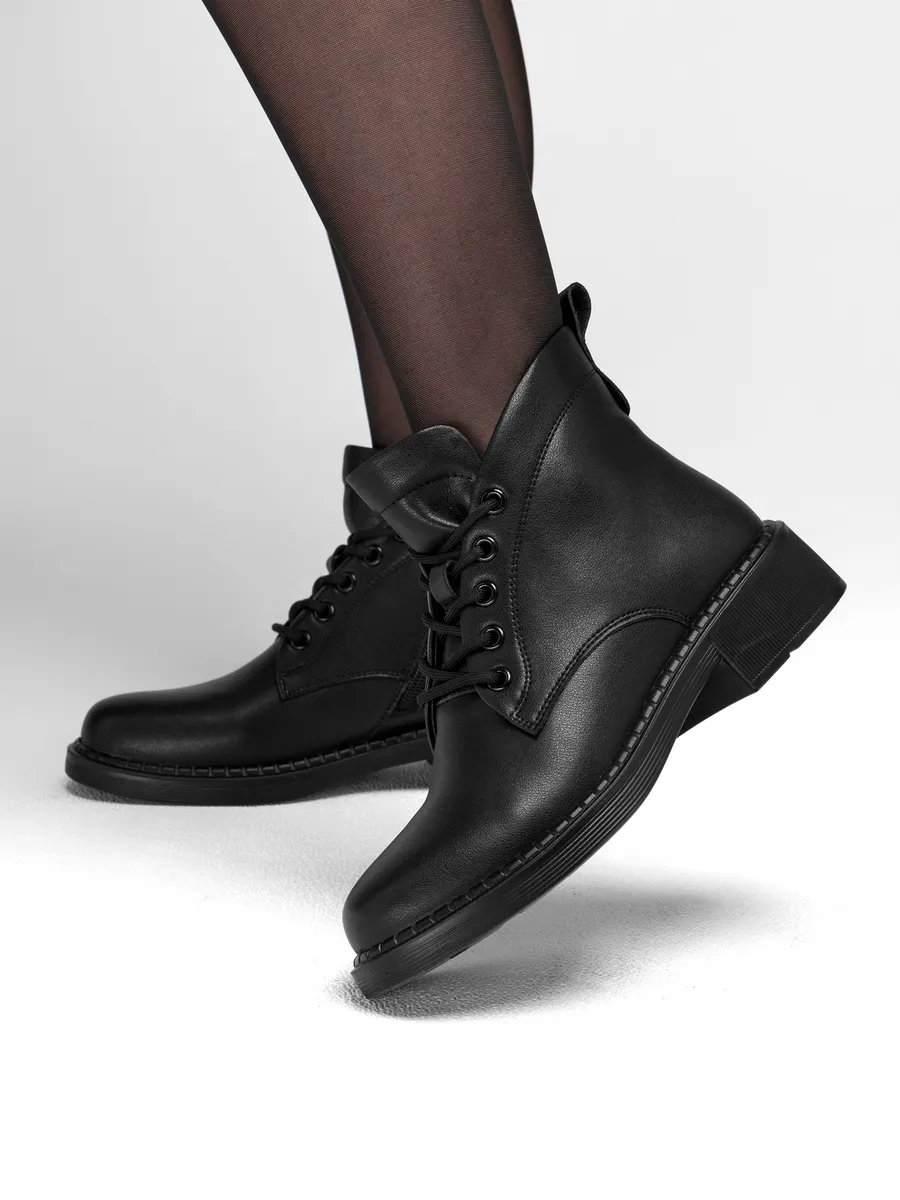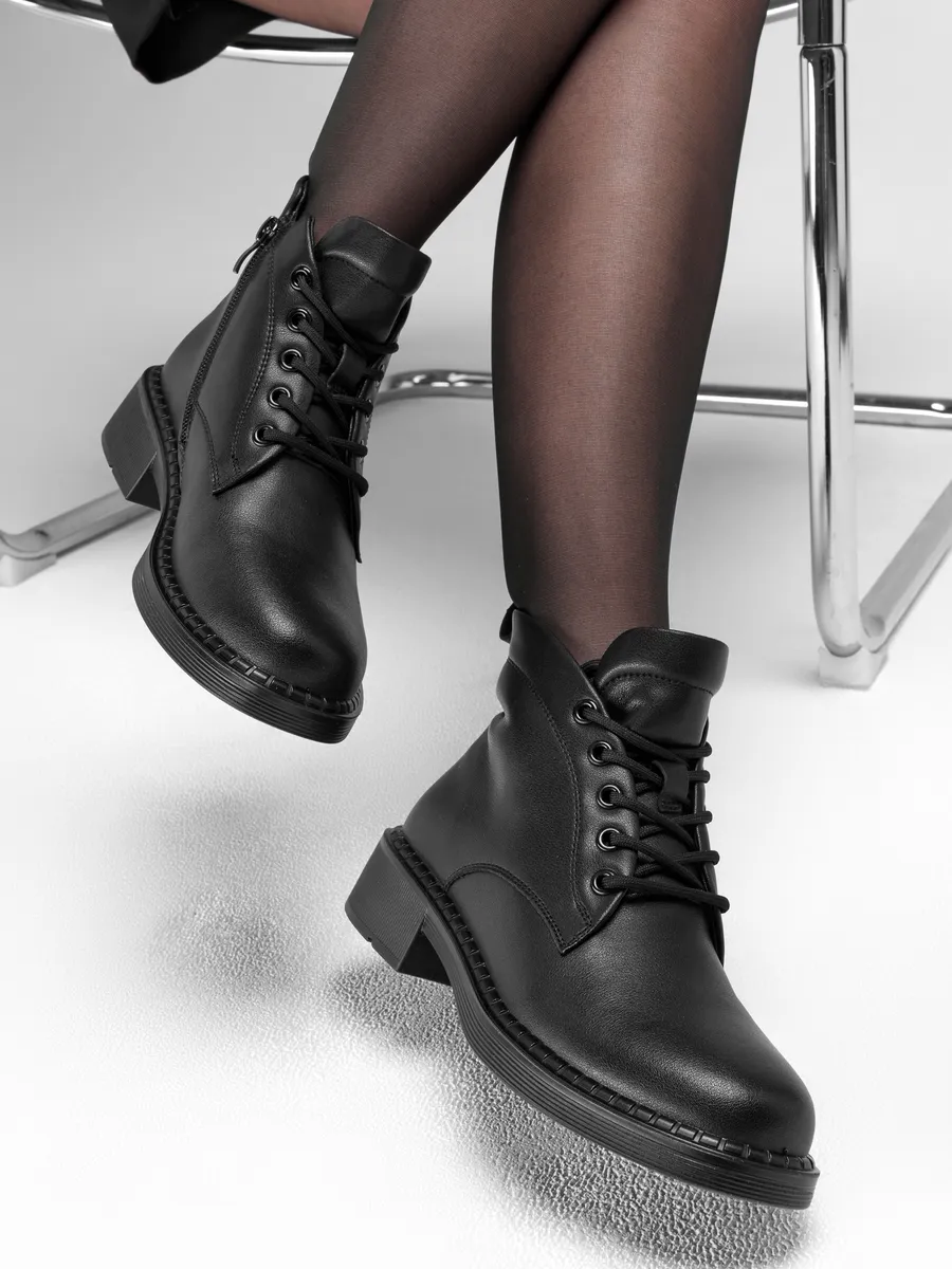 Короткие полуботинки выполнены из мягкой натуральной кожи, она обладает прочностью и хорошей воздухопроницаемостью. В совокупности эти материалы создают оптимальный микроклимат внутри обуви. Шнуровка помогает подстроить обувь под индивидуальные особенности стопы.