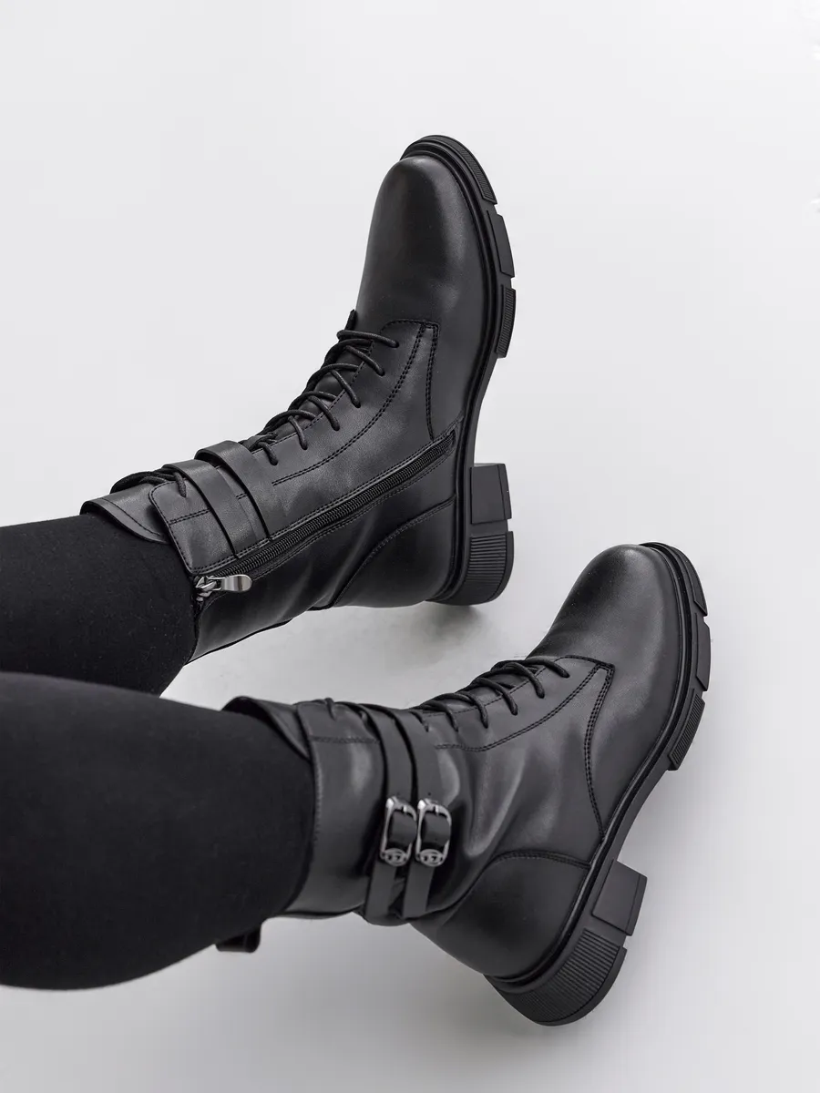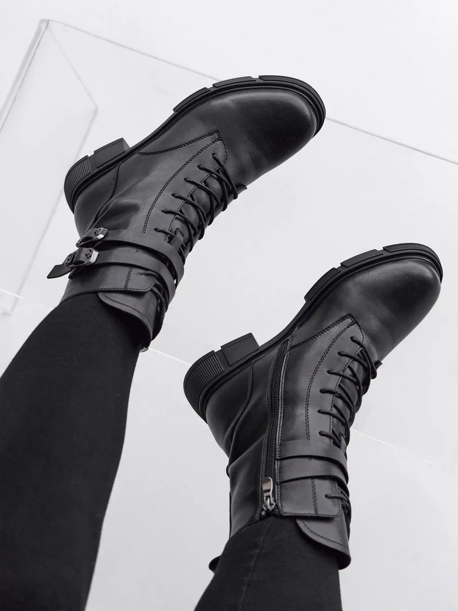 Высокие ботинки с молнией и шнурками для регулировки подъема по ноге создают стильный образ. Классическая модель черного цвета подойдет к любому повседневному, кэжуал, молодежному или праздничному наряду. Подойдут как для подростков, так и для девушек и женщин любого возраста.