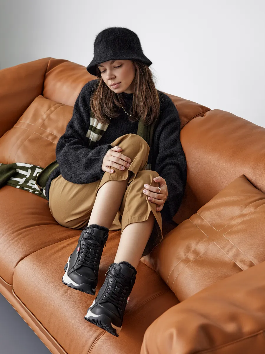 Модели на платформе идеально подходят для тех, кто предпочитает выделяться среди окружающих благодаря простоте ухода и классическому внешнему виду изделия. Женщины всех возрастов могут быть уверены в надежности этих ботинок в холодное время года благодаря удивительным свойствам натуральных материалов.