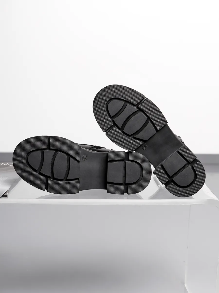 Предлагаем вашему вниманию ботинки, которые станут незаменимыми спутниками в зимние прогулки. Эти стильные ботинки на толстой подошве и невысоком каблуке созданы для женщин и девушек, которые ценят не только комфорт, но и моду. Изготовленные из натуральной кожи, они обещают долгий срок службы и приятное ощущение носке. Кожаные сапожки согреют в холодную зиму благодаря утепленной шерсти внутри.