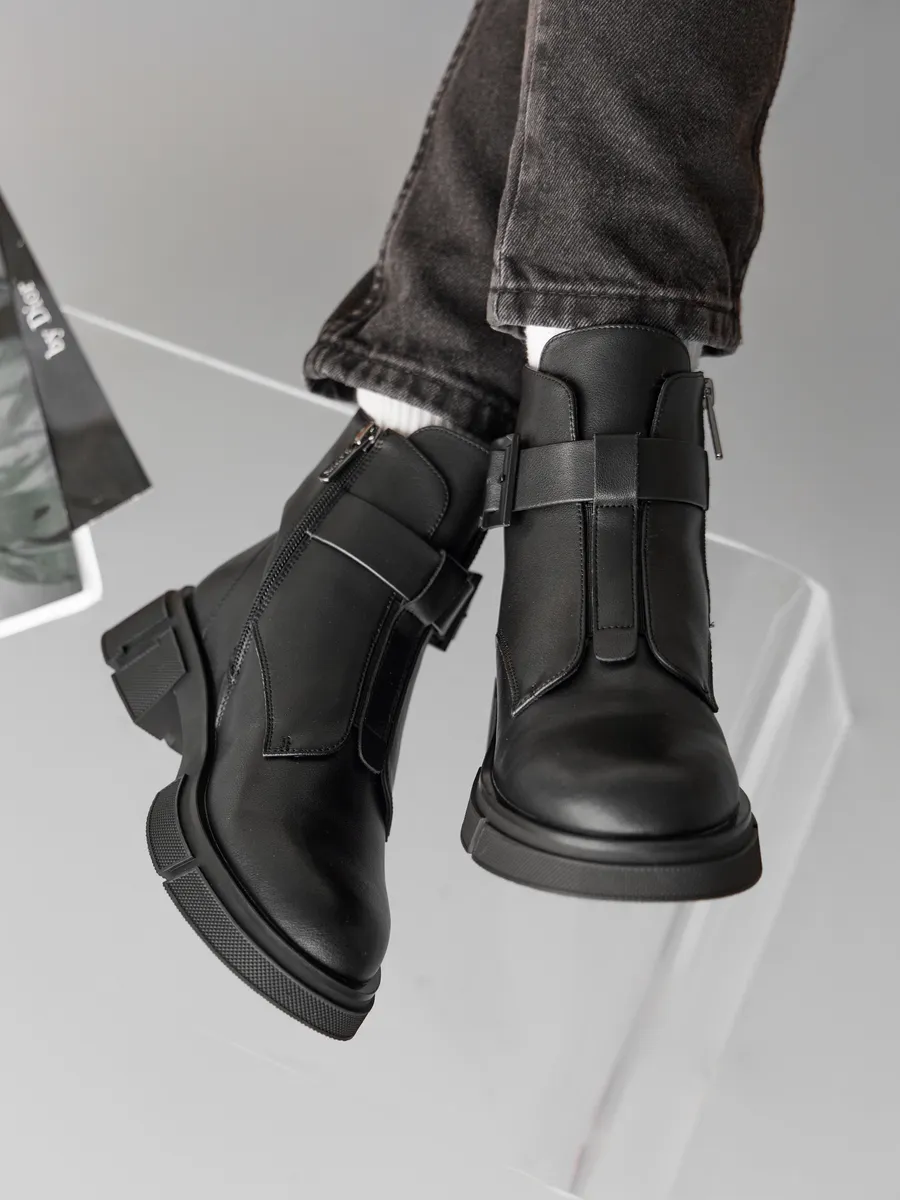 Обувь продумана до мелочей: оснащена удобной молнией для быстрого надевания и снятия, что оценит каждая девушка. Ремешок с пряжкой добавляет изюминку классическому дизайну сапожек.