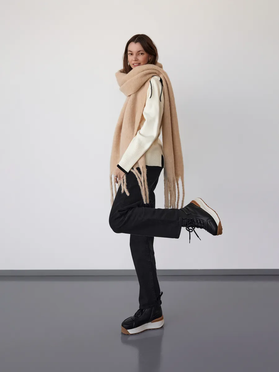 Каждая пара обладает стильной конструкцией с широкой областью для ноги, что важно для повседневного ношения в городе или за городом. Непромокаемая обувь гарантирует сухость даже при влажной погоде. Платформа добавляет практичность, облегчая ходьбу по снегу или льду благодаря продуманному рельефу. Прочный шов и дополнительная стабилизация акцентируют внимание на пятке.