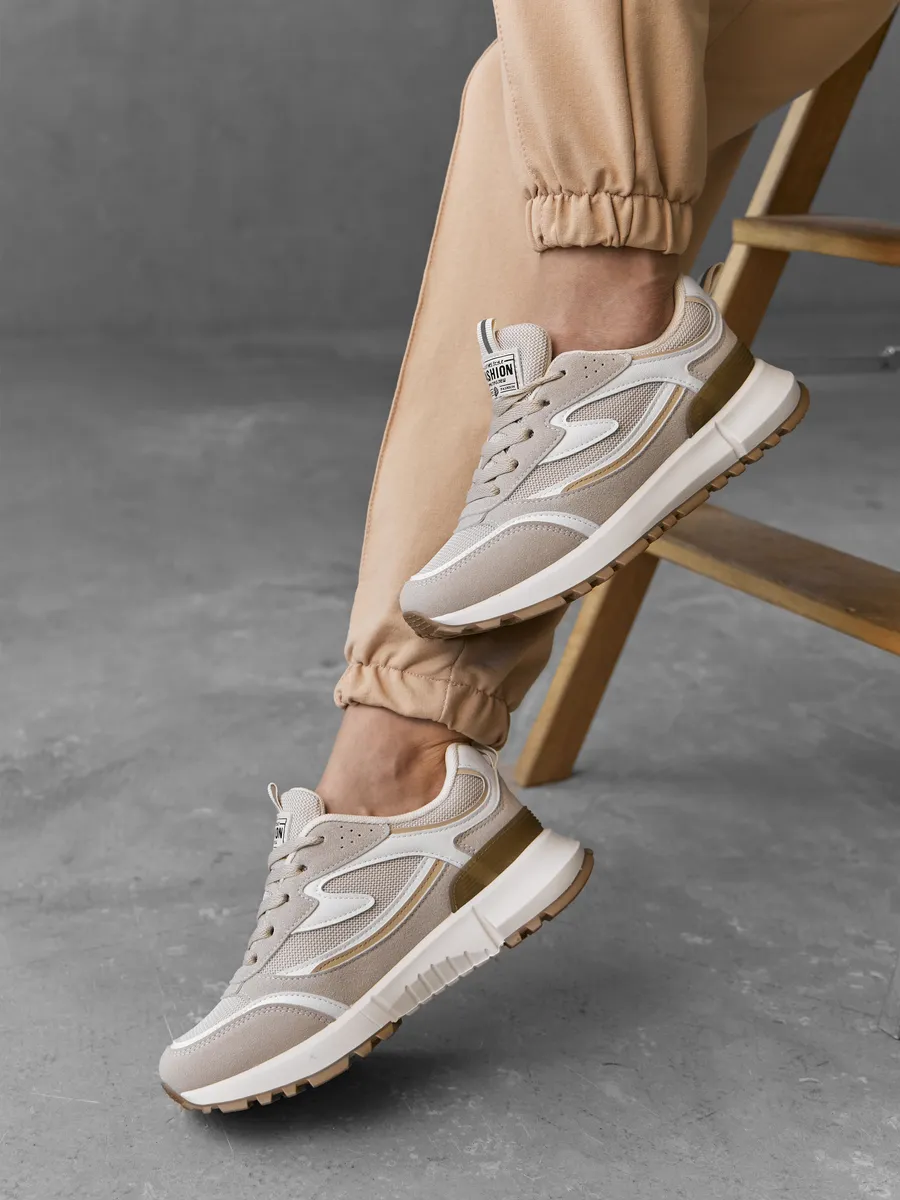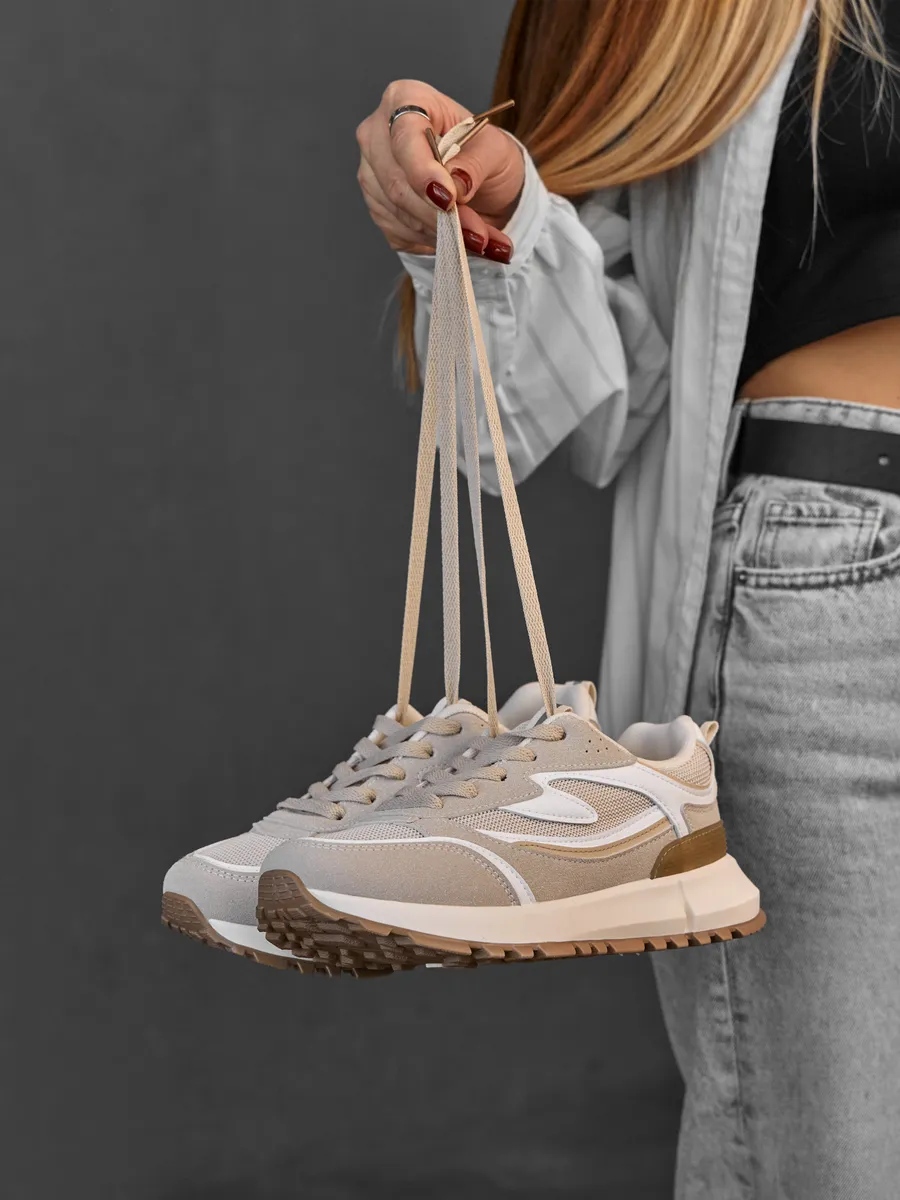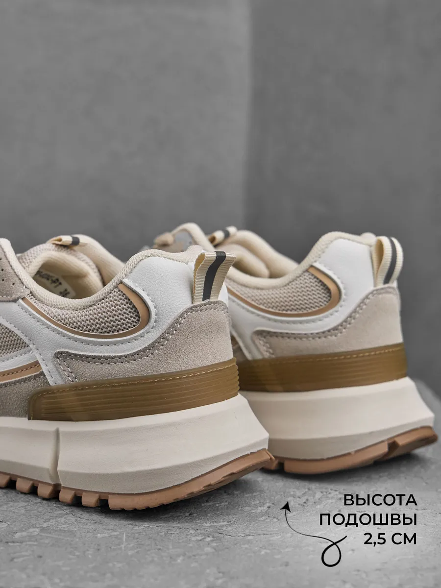 Лёгкие и удобные женские кроссовки – идеальный выбор для демисезонного периода, будь то весна, осень или лето. Выполненные из качественного текстиля и экокожи, кроссовки обеспечивают отличную вентиляцию. Благодаря мягкому текстильному верху, обувь адаптируется под анатомические особенности стопы, создавая ощущение лёгкости при каждом шаге. Плотная высокая подошва на платформе придаёт устойчивость и амортизирует нагрузку при ходьбе, снижая утомляемость ног. Это особенно важно для тех людей, которые ведут активный образ жизни и ценят удобство. Дизайн кроссовок сочетает элегантную простоту и спортивную эстетику, делая их универсальным элементом гардероба. Они выполнены в светлом цвете, что позволяет легко комбинировать их с различными стилями одежды. Надёжные шнурки обеспечивает удобную фиксацию и позволяет регулировать плотность посадки.  Кроссовки отлично подходят даже для широкой ноги, не сдавливая стопу и обеспечивая естественное движение. Съёмная мягкая стелька и внутренняя подкладка создают дополнительный комфорт, а толстая подошва придаёт обуви стильный акцент и защищает ноги от ударных нагрузок при ходьбе. Эти спортивные кроссовки подойдут не только для тренировок и прогулок, но и для повседневного ношения. Они станут отличным выбором для женщин которым важно выглядеть модно, но при этом не жертвовать удобством. Оригинальный дизайн и высокое качество материалов делают эту модель востребованной среди тех, кто ценит комфорт и стиль в каждом шаге. Если вы ищете осенние тканевые кроссовки с ортопедической поддержкой, дышащей сеткой, мягкой сеточкой внутри и отличной амортизацией, идеально подходящие как для бега, так и для тренировок в зале или спортзале, лёгкие, модные и универсальные текстильные кроссовки, эта модель станет вашим незаменимым спутником в сезоне 2025 года, дополняя ваш гардероб стильной и удобной обувью!
