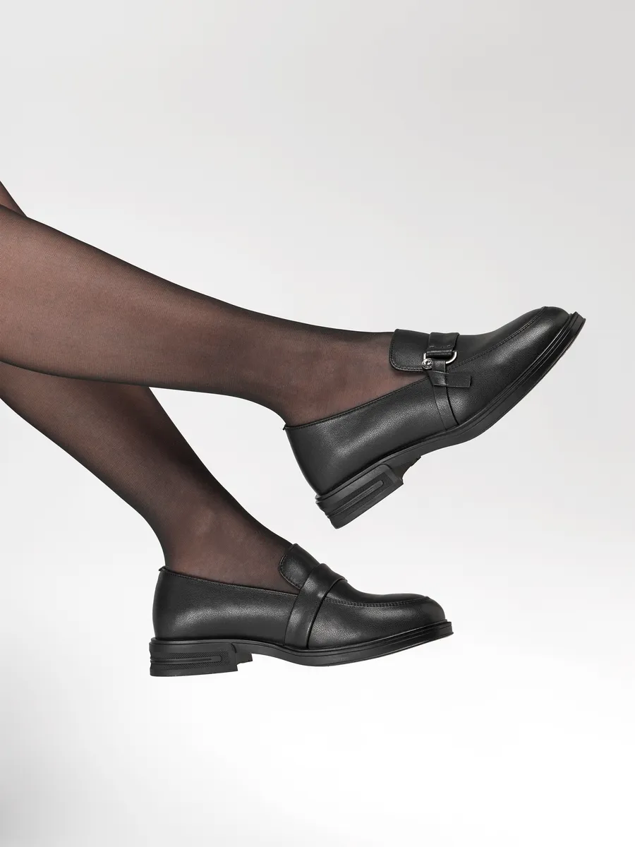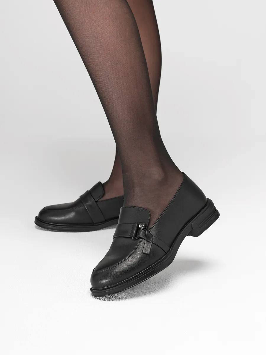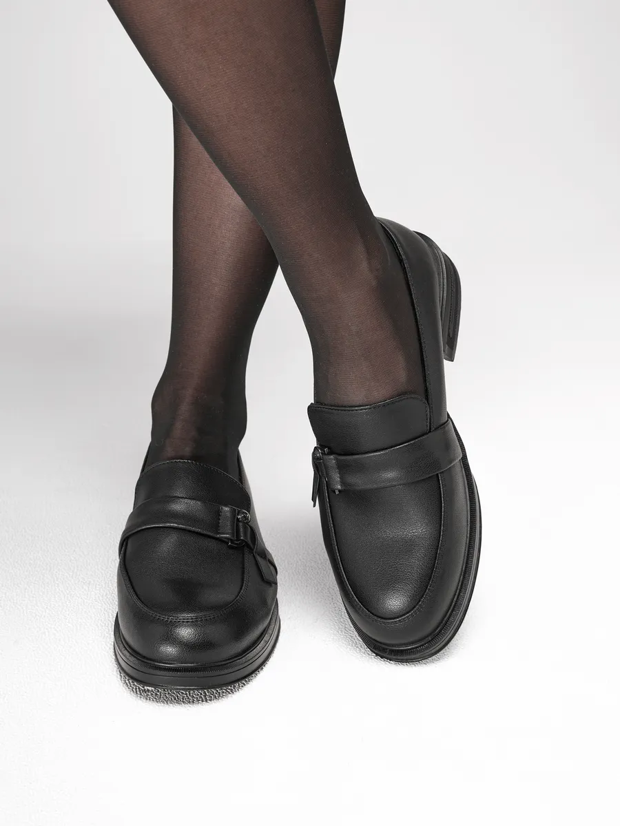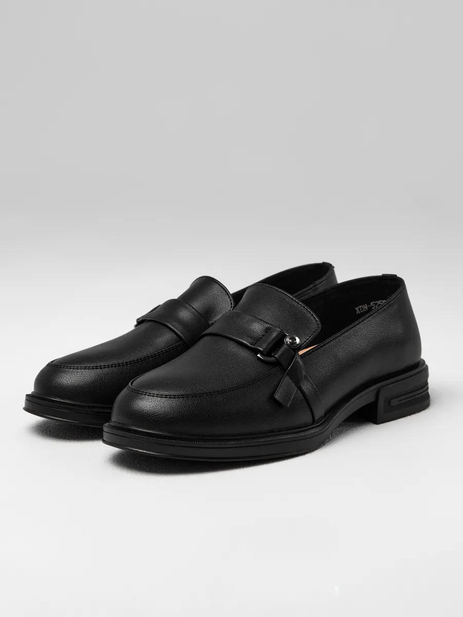 Лоферы женские натуральная кожа черные на каблуке XDN-52599-4A-ST