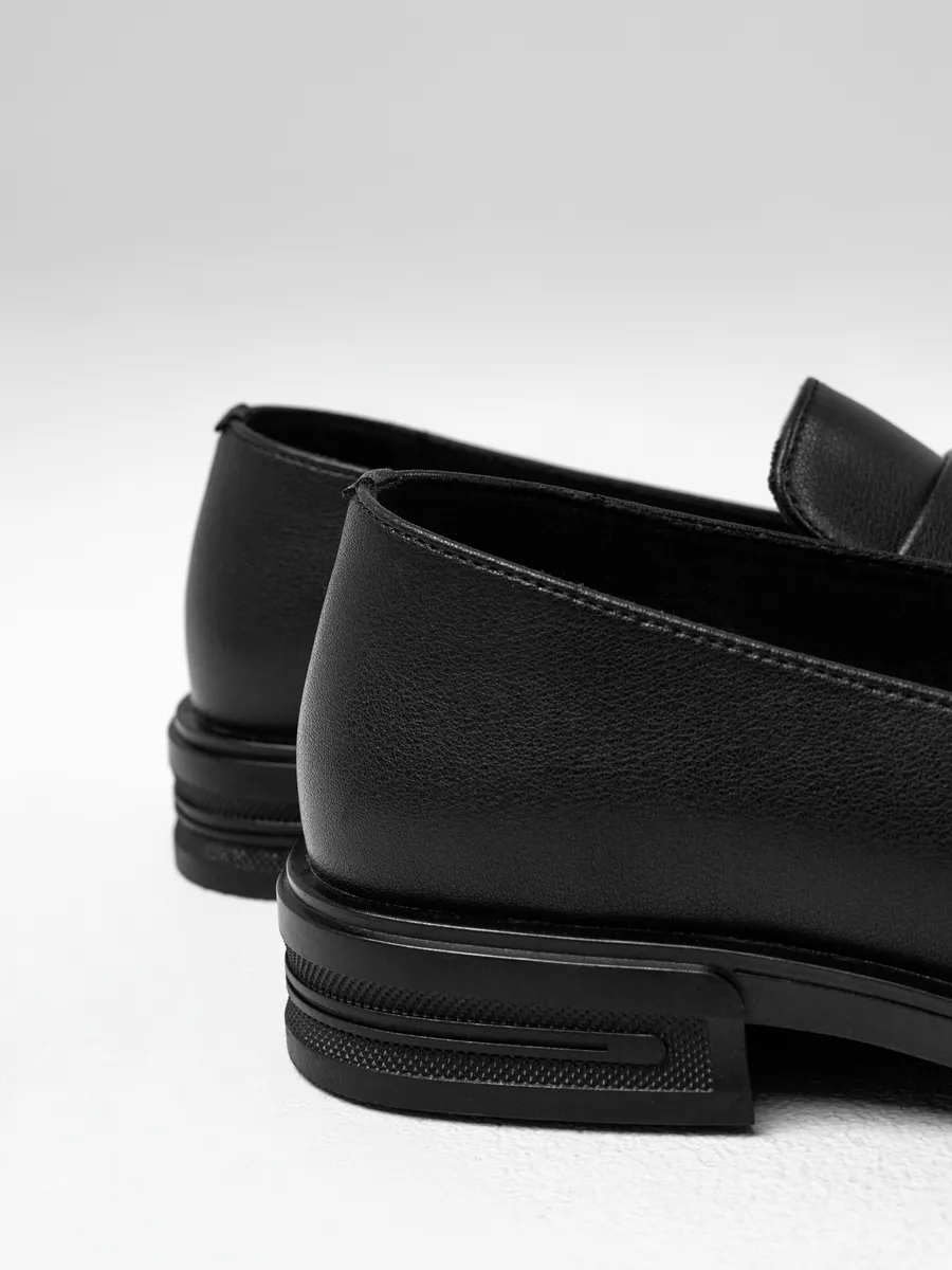 Лоферы женские натуральная кожа черные на каблуке