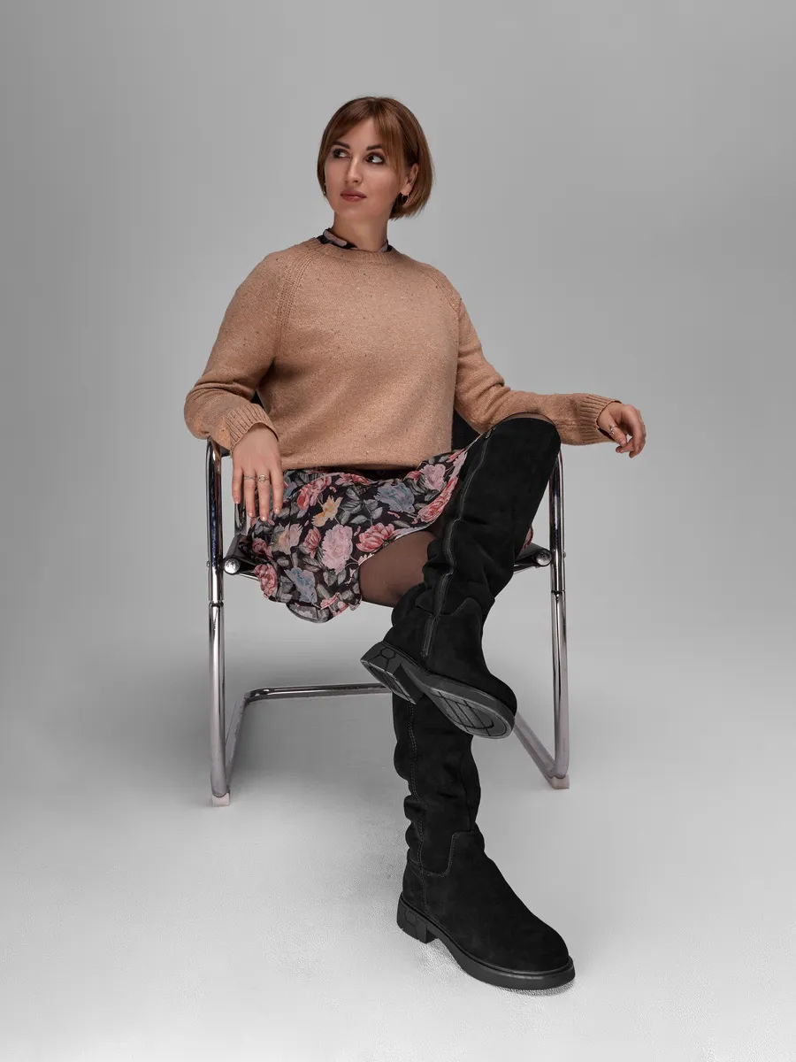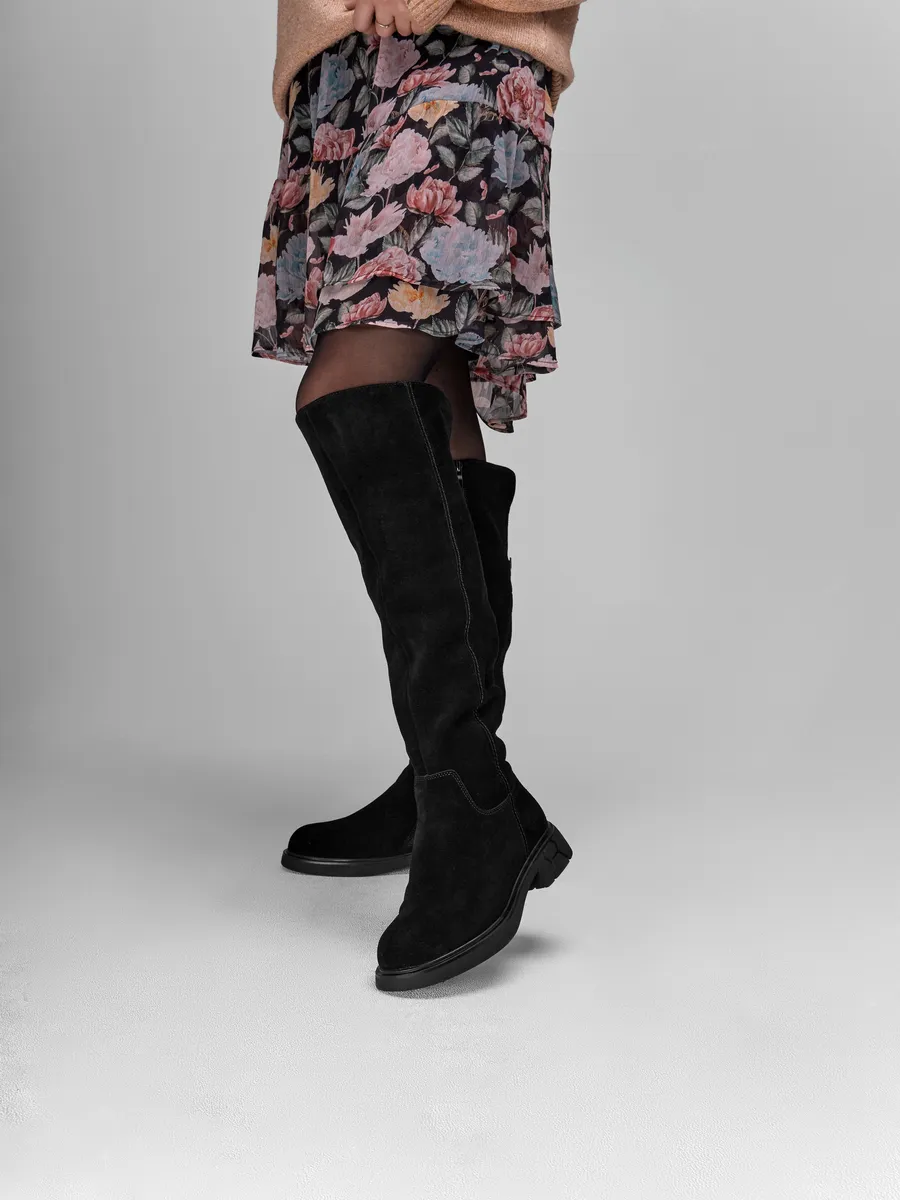 Сапоги выполненные из высококачественной натуральной замши обеспечивают долговечность и комфорт.