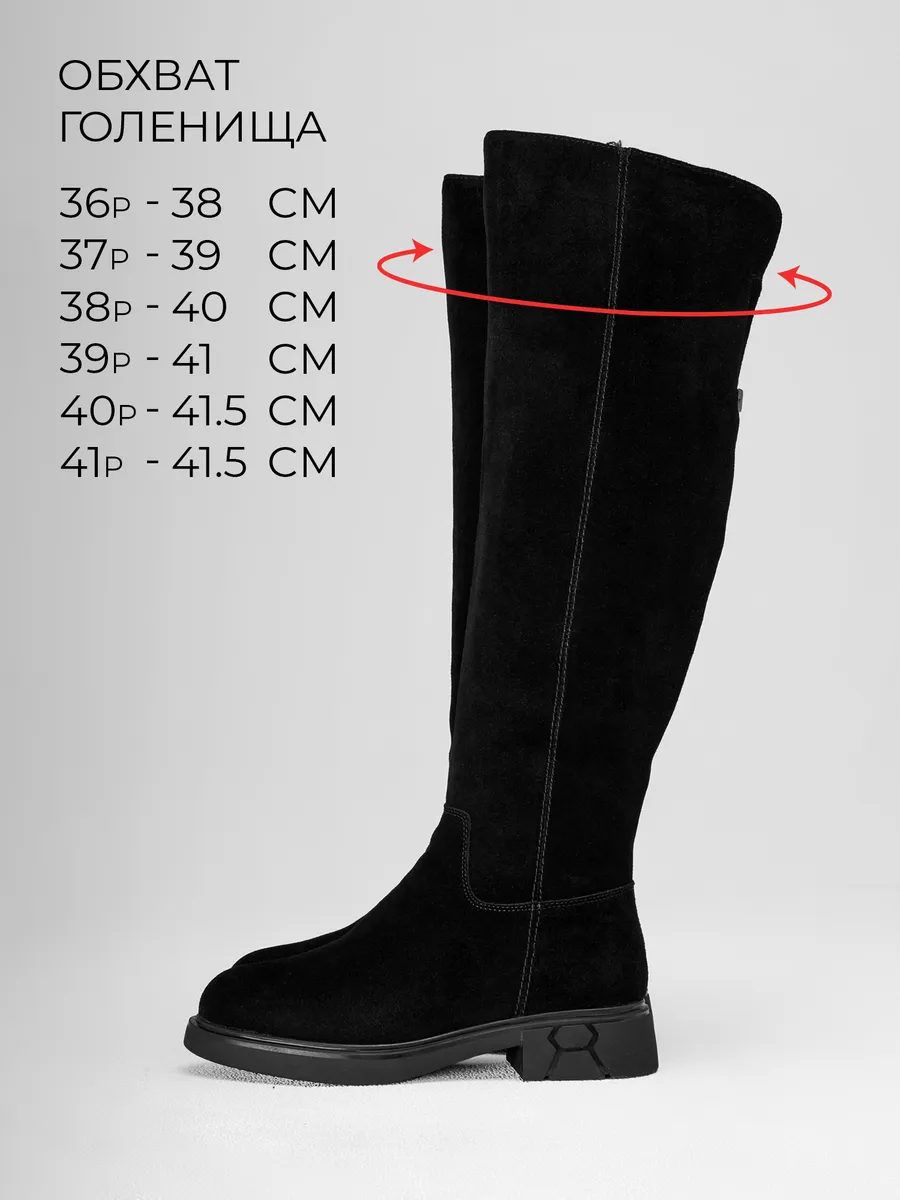 Обхват голенища в 36 размере примерно 38 см, в 37 около 39 см, в 38 примерно 40, в 39 размере 41 см, в 40 и 41 примерно 41,5 см.