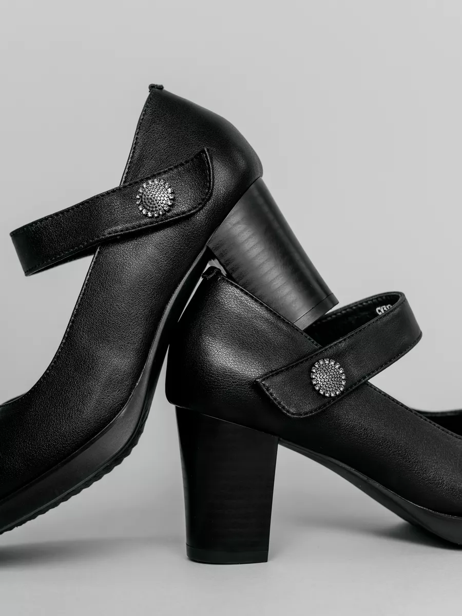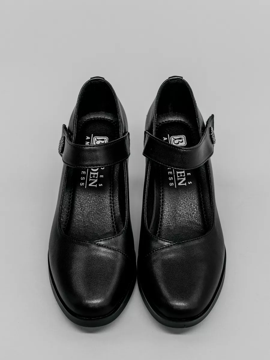 Черные туфли с закрытым носом – это классика, которая всегда в тренде. Они украшены блестящими серебряными брошами со стразами, что добавляет им элегантности и шарма. Эти туфли подходят как для вечерних мероприятий, так и для повседневной носки. Они доступны в различных размерах, включая большие, и подходят для женщин с проблемными ногами. Эти туфли также могут использоваться как сменная обувь для работы, офиса, школы.