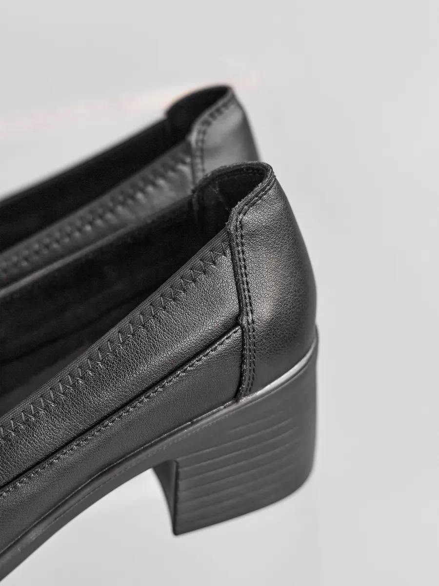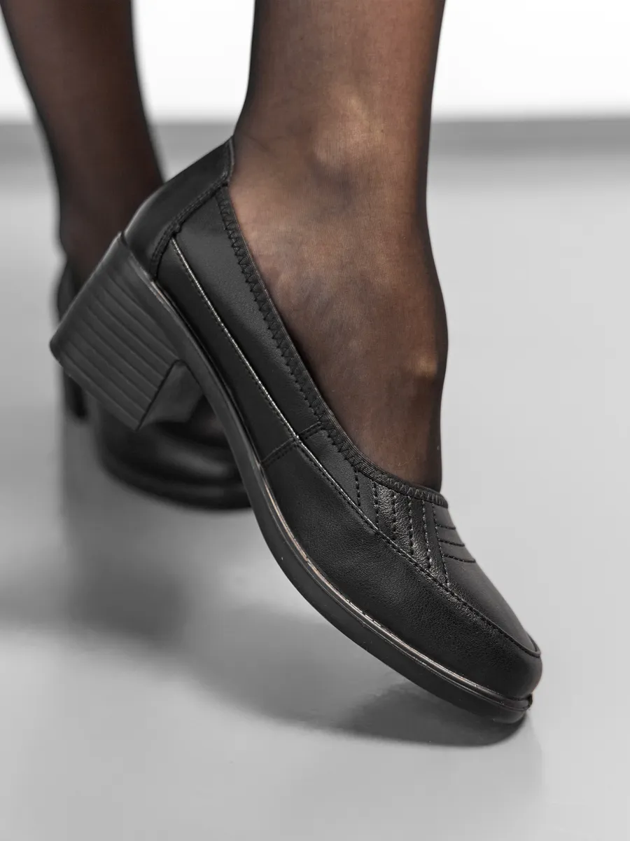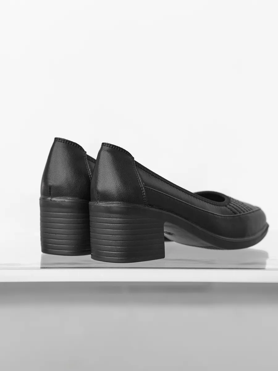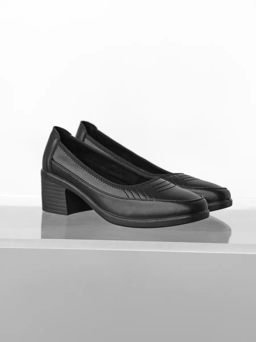 Туфли выполнены в классическом стиле с закрытым круглым носком, что делает их утончённым выбором для женщин, ценящих сдержанную элегантность. Устойчивый каблук средней высоты обеспечивает комфорт на протяжении всего дня. Эта обувь подойдёт как для работы в офисе, так для торжественных мероприятий, повседневных прогулок.