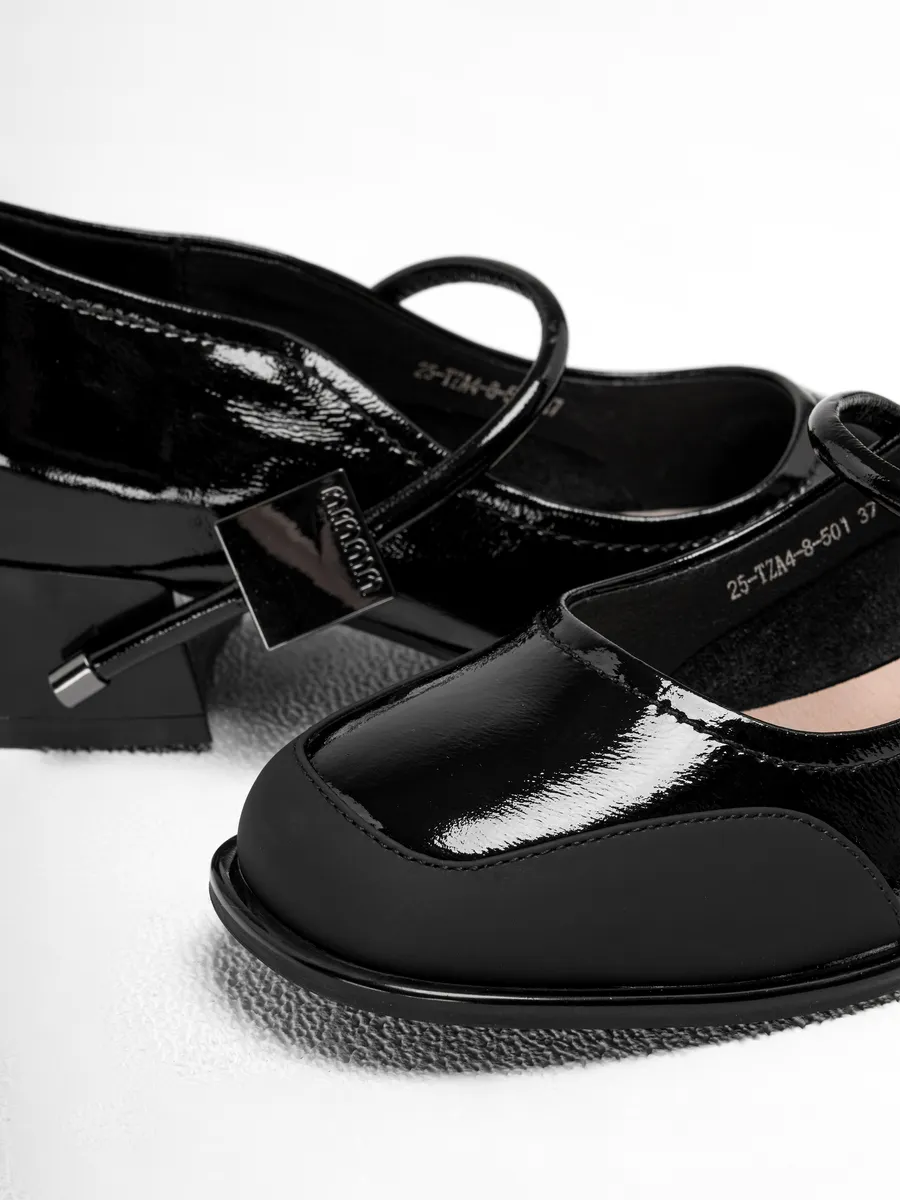Эти женские туфли из натуральной лаковой кожи станут незаменимой частью вашего гардероба, обеспечивая элегантность, комфорт и универсальность для любого сезона. Выполненные в классическом чёрном цвете, они идеально подходят для осени 2025 года. Благодаря сочетанию практичного дизайна и высококачественных материалов, эти туфли легко впишутся в любой образ, будь то деловой, повседневный или праздничный.