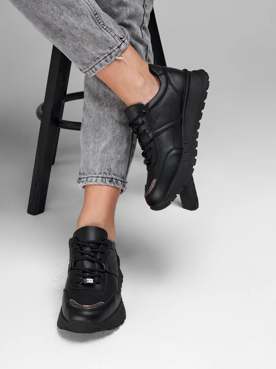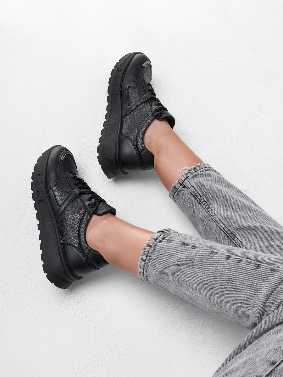 Кожаные кроссовки выполнены из высококачественных, дышащих материалов, что обеспечивает удобство и долговечность. Тракторная подошва добавляет современный трендовый вид. Они подойдут под любой наряд в стиле спорт или кэжуал.